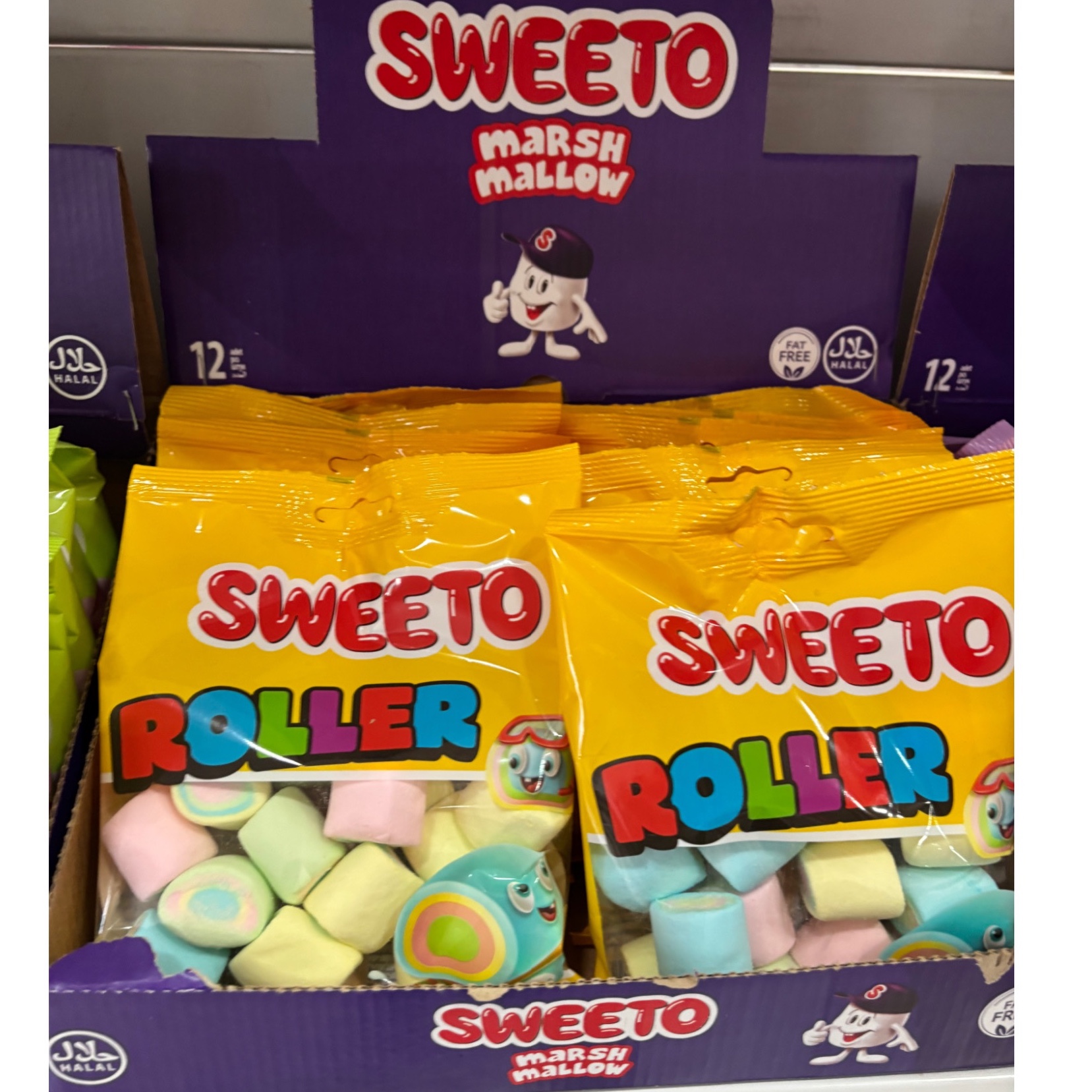 پاستیل مارشمالو Sweetoبا طرح رول رنگین کمانی 12عددی