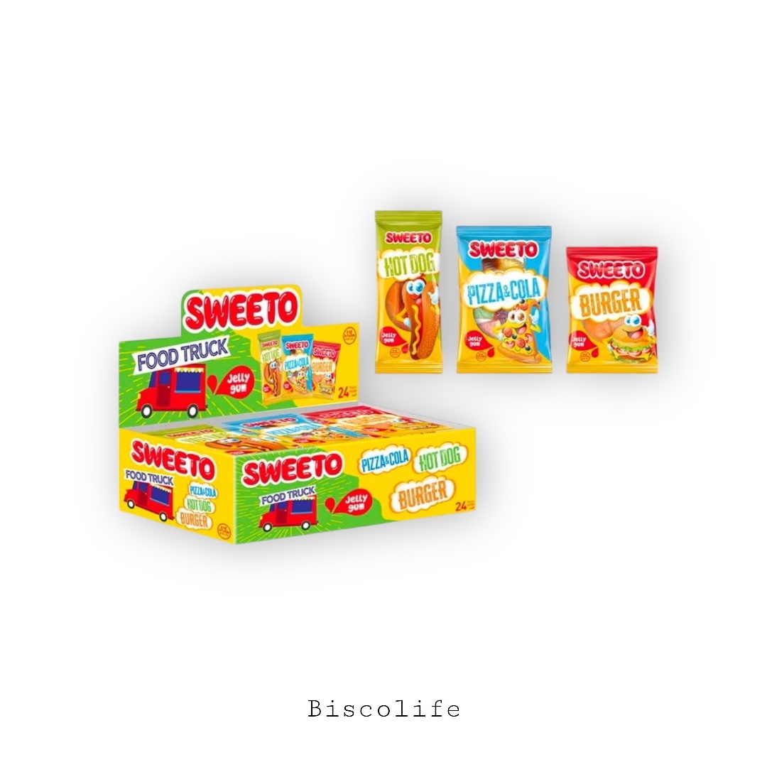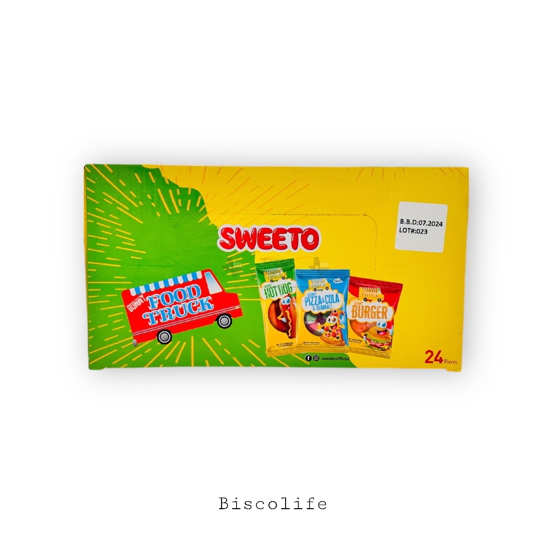 پاستیل کامیون فست فود سویتوSweetoدر طرح های (همبرگر،پیتزا،هات داگ) بسته 24تایی